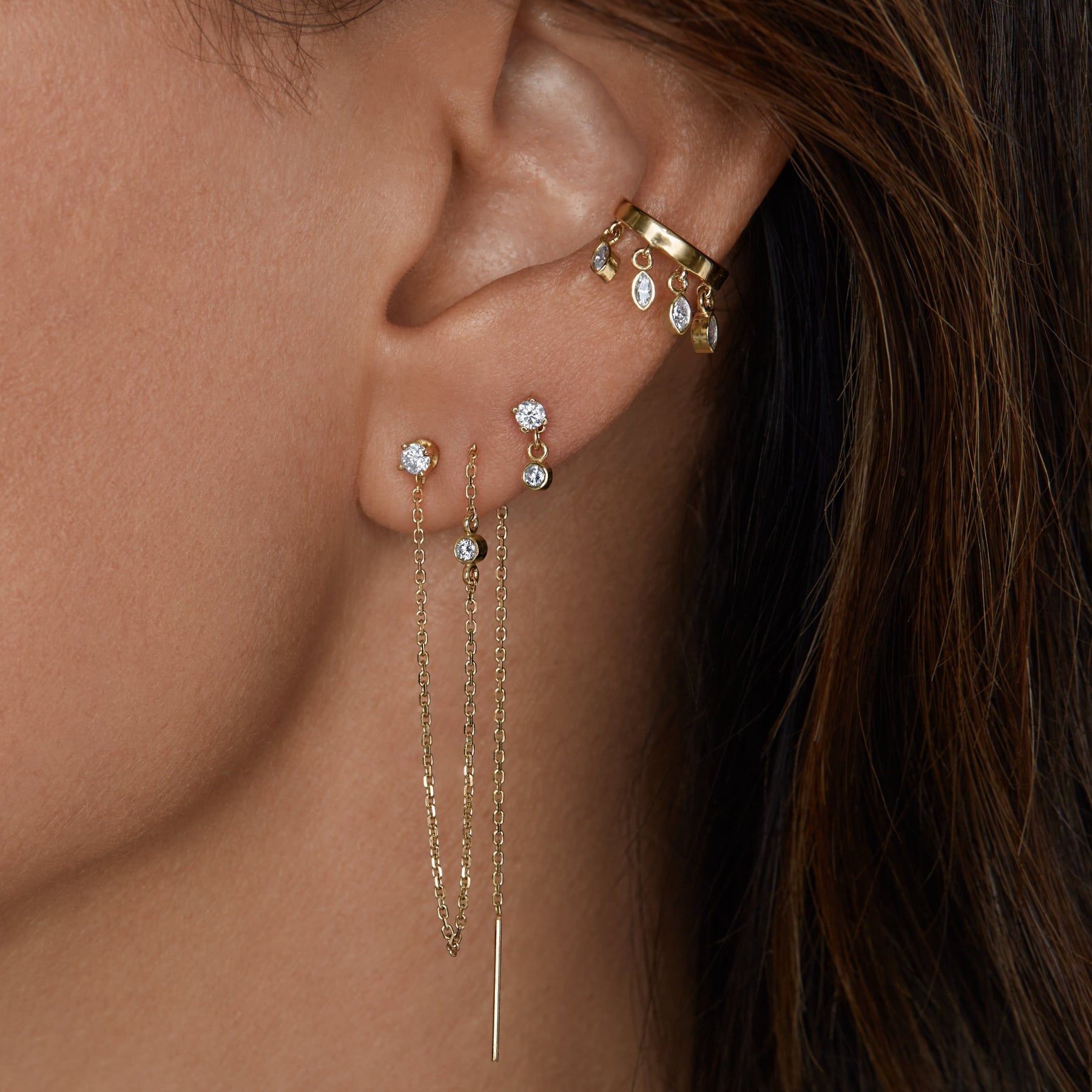 Social Anarchy Diamond Ear Cuff & Chain Diamond Stud